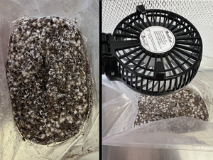1. Unseal the bag and carefully slide the substrate cake and mushrooms out.